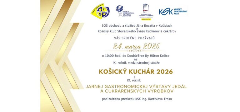 Košický klub Slovenského zväzu kuchárov a cukrárov v spolupráci so SOŠ obchodu a služieb Jána Bocatia, Bocatiova 1, Košice a za podpory hotela Double Tree by Hilton Košice zorganizovali dňa 24. marca 2026 IX. ročník medzinárodnej súťaže KOŠICKÝ KUCHÁR 2026